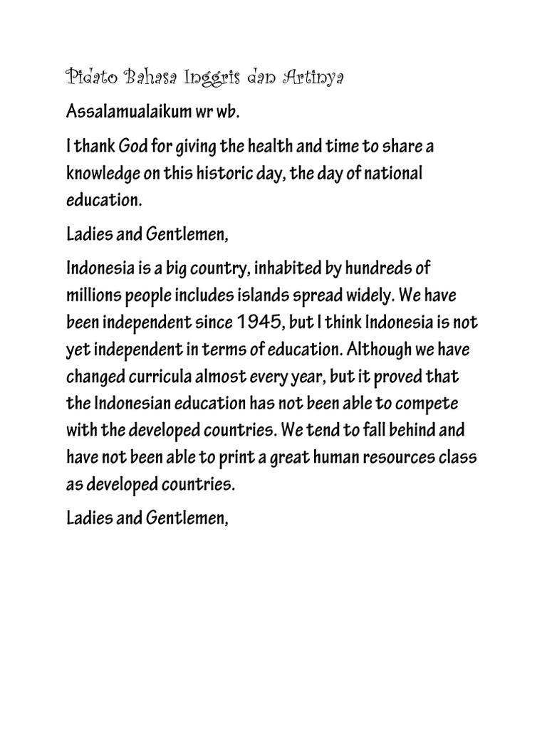 Kumpulan Teks Pidato Dalam Bahasa Inggris Dan Artinya Pdf