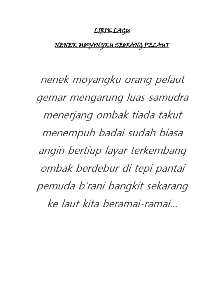 Lirik Lagu Nenek Moyangku Seorang Pelaut Pdf