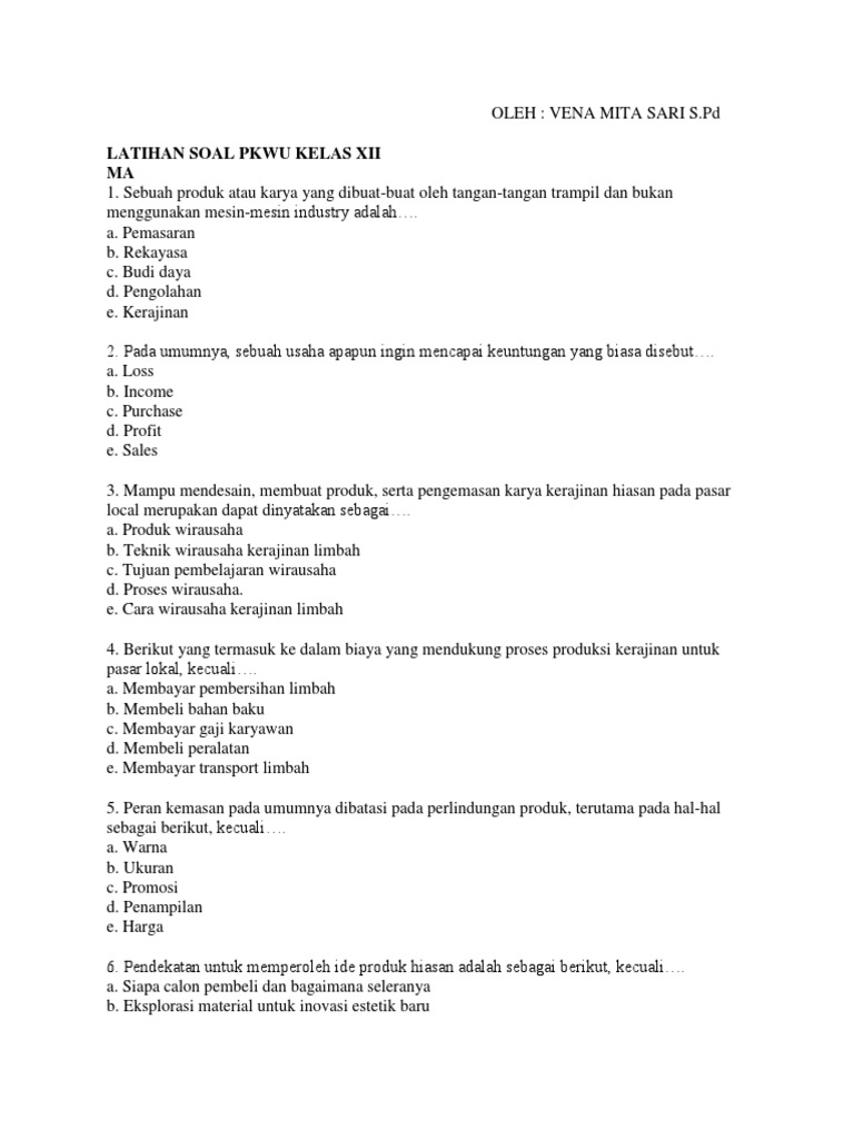 Soal Prakarya Pdf