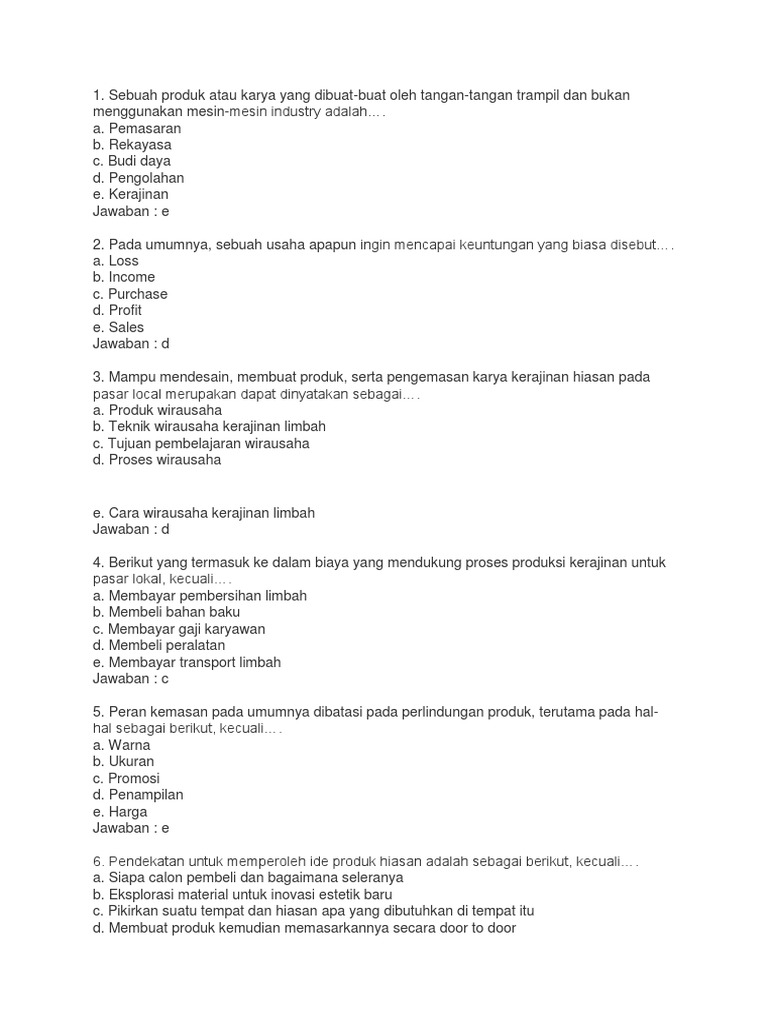 Berikut di bawah ini soal essay prakarya kurtilas kelas 12 semester gasal dilengkapi kunci jawaban dengan pertanyaan dimulai dari nomor 1. Siapa calon pembeli dan bagaimana seleranya. Eksplorasi material untuk inovasi.