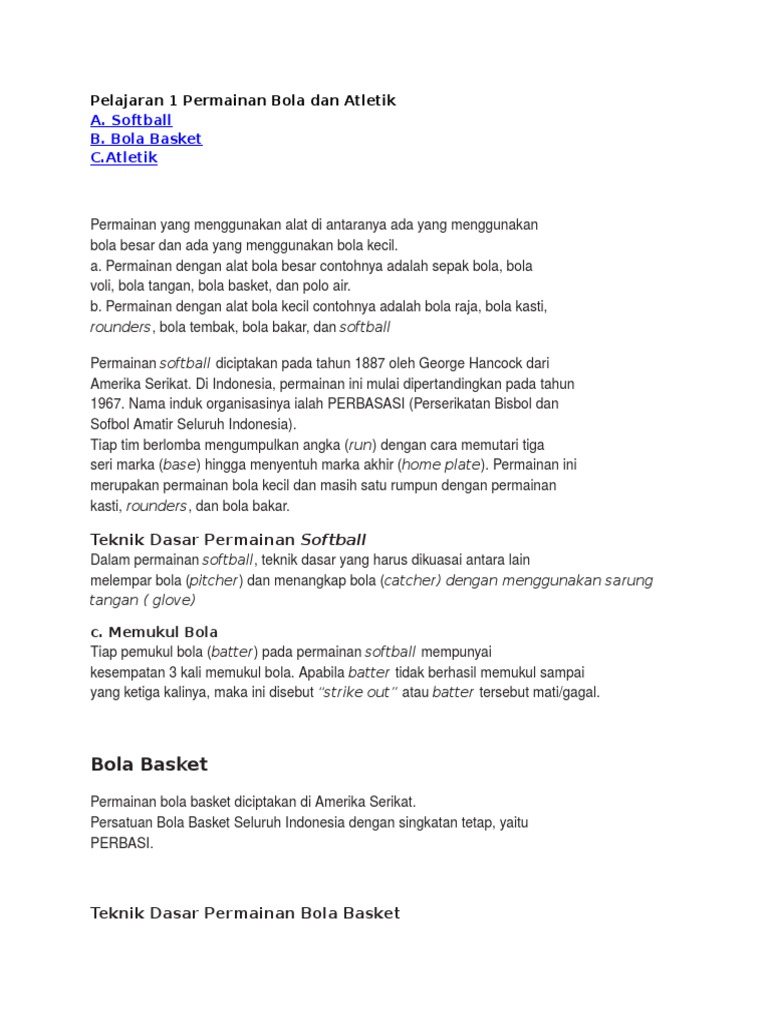 Pelajaran 1 Permainan Bola Dan Atletik Pdf