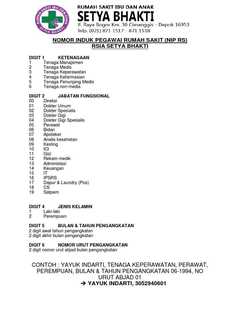 NIP merupakan Nomor Induk Pegawai Negeri Sipil PNS yang terdiri dari 18 digit angka yang. Pemberian nomor induk karyawan. Urip Sumoharjo No10 Ditetapkan Direktur Rumah Sakit Hapsah STANDAR.