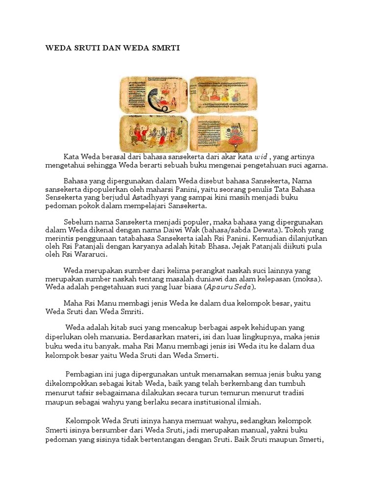 Pengertian weda smerti. Pengertian Weda Smerti Smerti adalah Weda yang disusun kembali berdasarkan ingatan. 101-102 Keluarga berasal dari bahasa sanskerta dari kata. Penyusunan ini didasarkan atas pengelompokan isi materi.