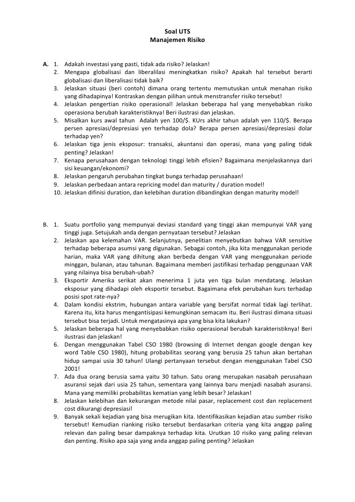 Soal Uts Manajemen Risiko Pdf