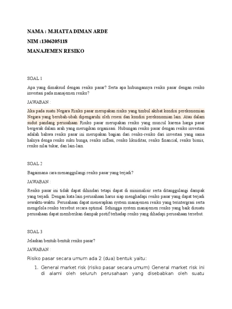 Doc Soal Dan Jawaban Risk Ahril Hidayat Academia Edu