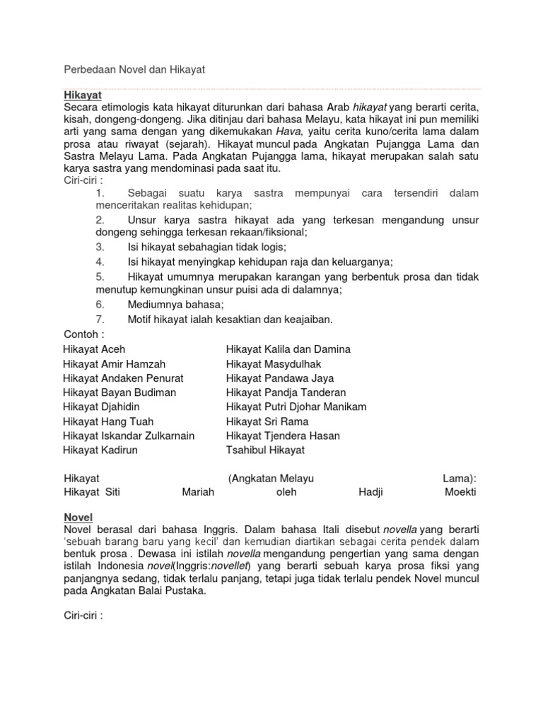 Membandingkan Perbedaan Hikayat Novel Dan Cerpen Pdf