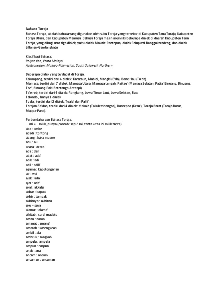 Percakapan bahasa toraja dan artinya. Seperti monyet terjun ke kebun kacang. Percakapan bahasa batak dengan artinya sama pacar yang mau ketemuan Baoa. Setelah dipikir-pikir kita sebaiknya membuat percakapan bahasa Toraja saja.