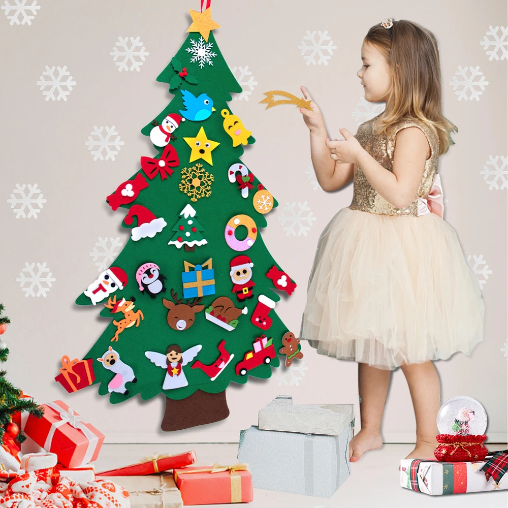 Diy Anak Anak Pohon Natal Lakan Dekorasi Natal Untuk Rumah 2021 Hadiah Tahun Baru Ornamen Natal Santa Klaus Rusa Manusia Salju Pohon Aliexpress