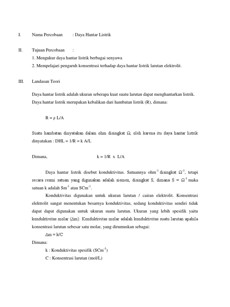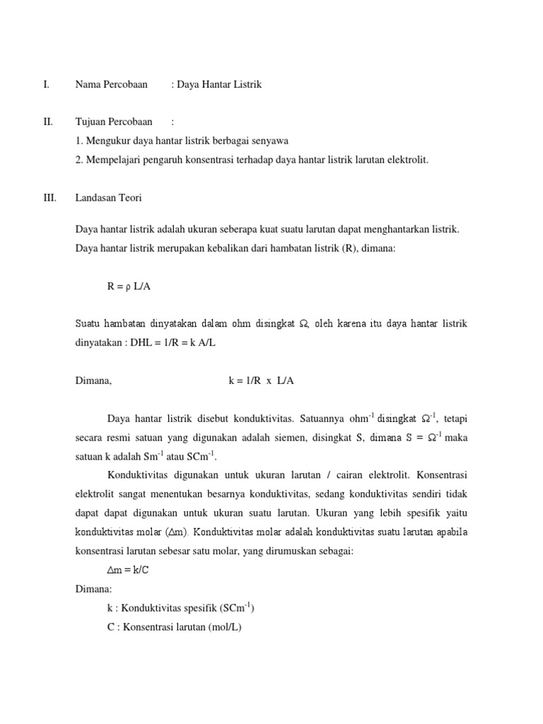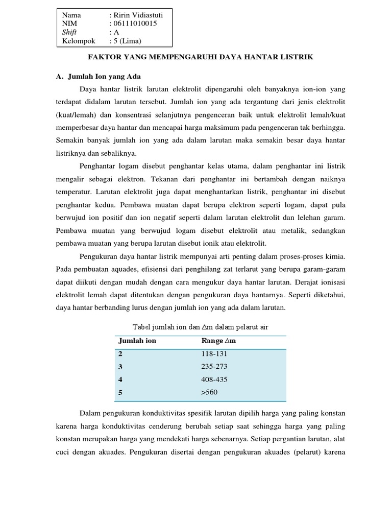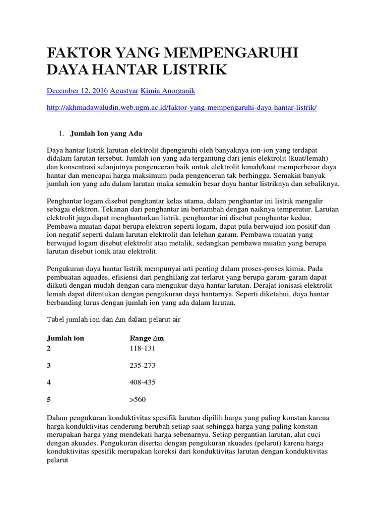 Faktor Yang Mempengaruhi Daya Hantar Listrik Docx Document