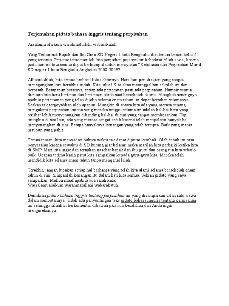 Teks Pidato Bahasa Inggris Tentang Perpisahan